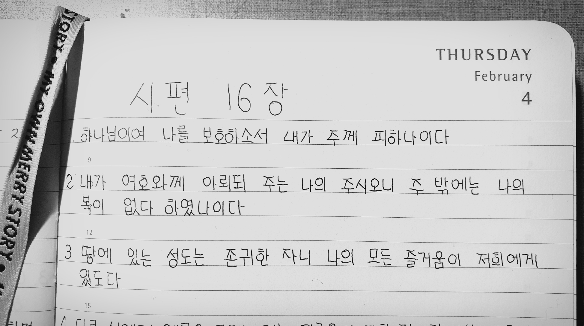 pray Psalm 16 by carrot princess 2021. 2. 5. 공유하기 게시글 관리 하늘 담은 찬양 'pray' 카테고리의 다른 글 Psalm 19 : 14 (0) 2021.02.11 Psalm 17 (0) 2021.02.06 Psalm 12 (0) 2021.02.02 Psalm 9 (0) 2021.01.29 Psalm 8 (0) 2021.01.26 관련글 Psalm 19 : 14 Psalm 17 Psalm 12 Psalm 9