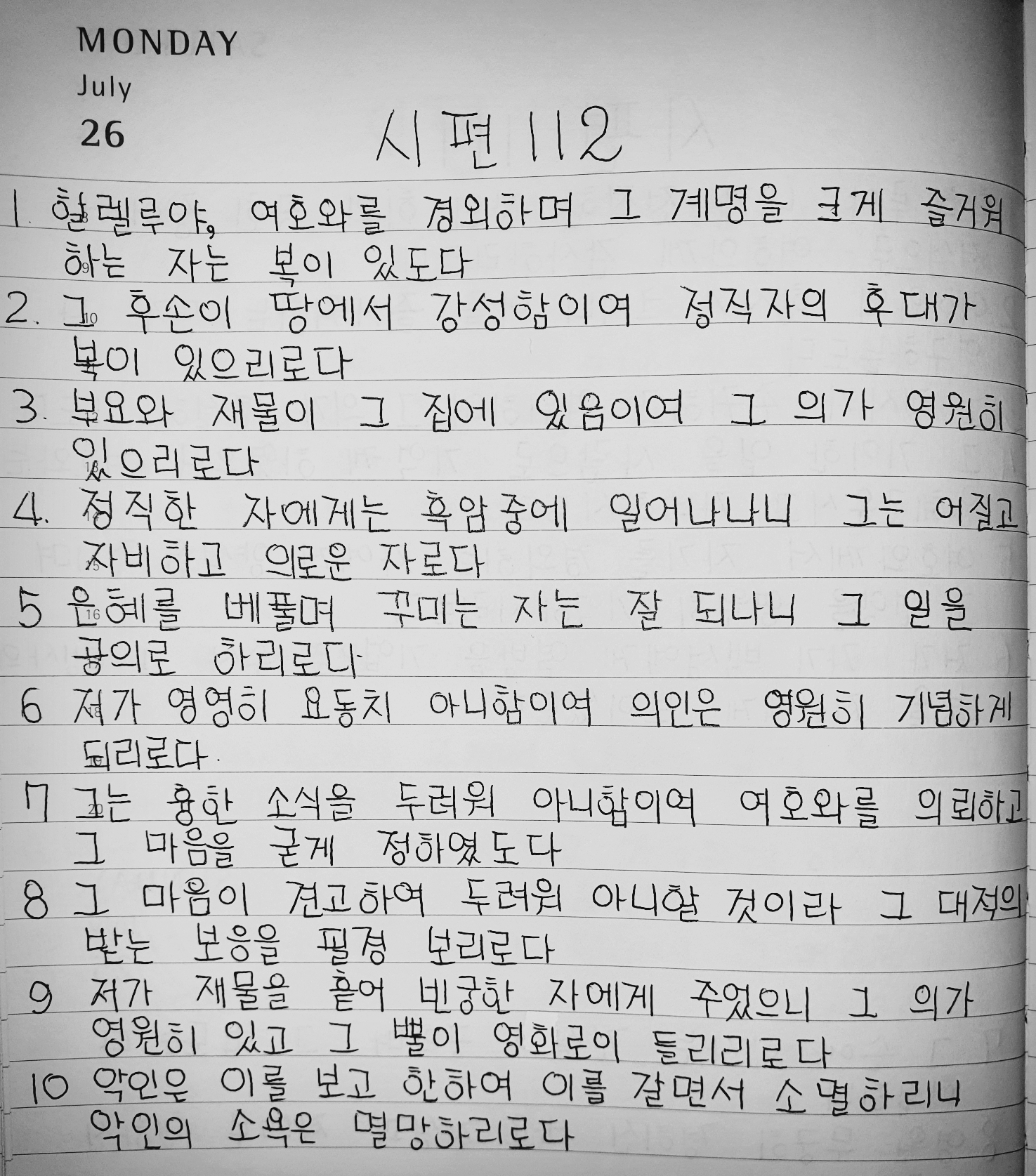 정직한 자에게는 흑암 중에 빛이 일어나나니 그는 어질고 자비하고 의로운 자로다