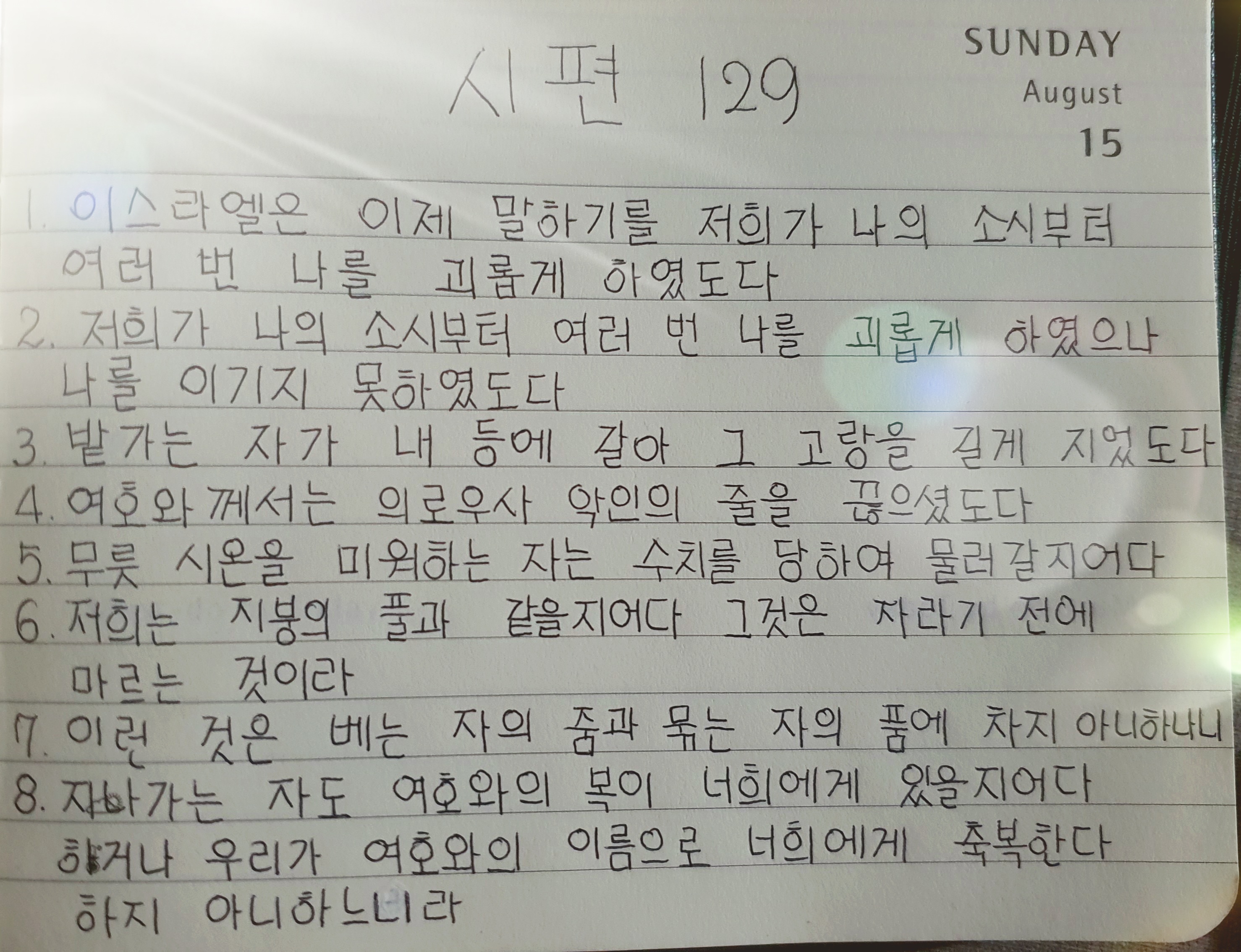 pray Psalm129 by carrot princess 2021. 8. 15. 여호와께서는 의로우사 악인의 줄을 끊으셨도다The LORD is righteous: he hath cut asunder the cords of the wicked. 공유하기 게시글 관리 하늘 담은 찬양 'pray' 카테고리의 다른 글 Psalm131 (0) 2021.08.17 Psalm130 (0) 2021.08.16 Psalm128 (0) 2021.08.14 Psalm126 (0) 2021.08.12 Psalm125 (0) 2021.08.11 관련글 Psalm131 Psalm130 Psalm128 Psalm126
