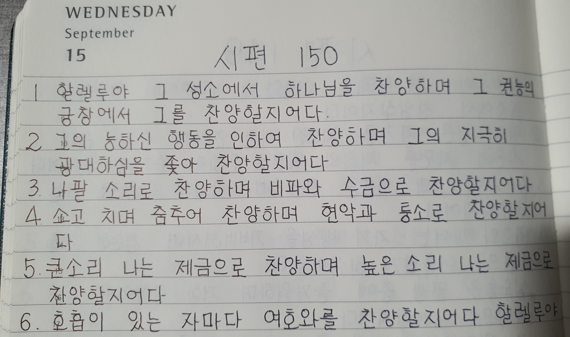 호흡이 있는 자마다 여호와를 찬양할지어다 할렐루야